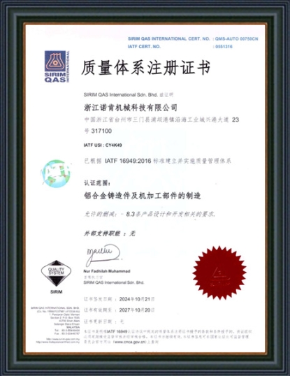 浙江諾肯機械科技有限公司(原黃巖新興機械配件有限公司)成立于1983年,坐落于浙江省東海之濱臺州市三門縣沿海工業(yè)城,現(xiàn)有員工160余人,總體占地面積40000平米。公司秉承“誠信為本、精工細(xì)作”的精神,現(xiàn)已發(fā)展成為集研發(fā)、制造及營銷為一體的鋁合金精密鑄件生產(chǎn)基地,為客戶提供精密鑄造、熱處理和精密機加工的一體化解決方案。